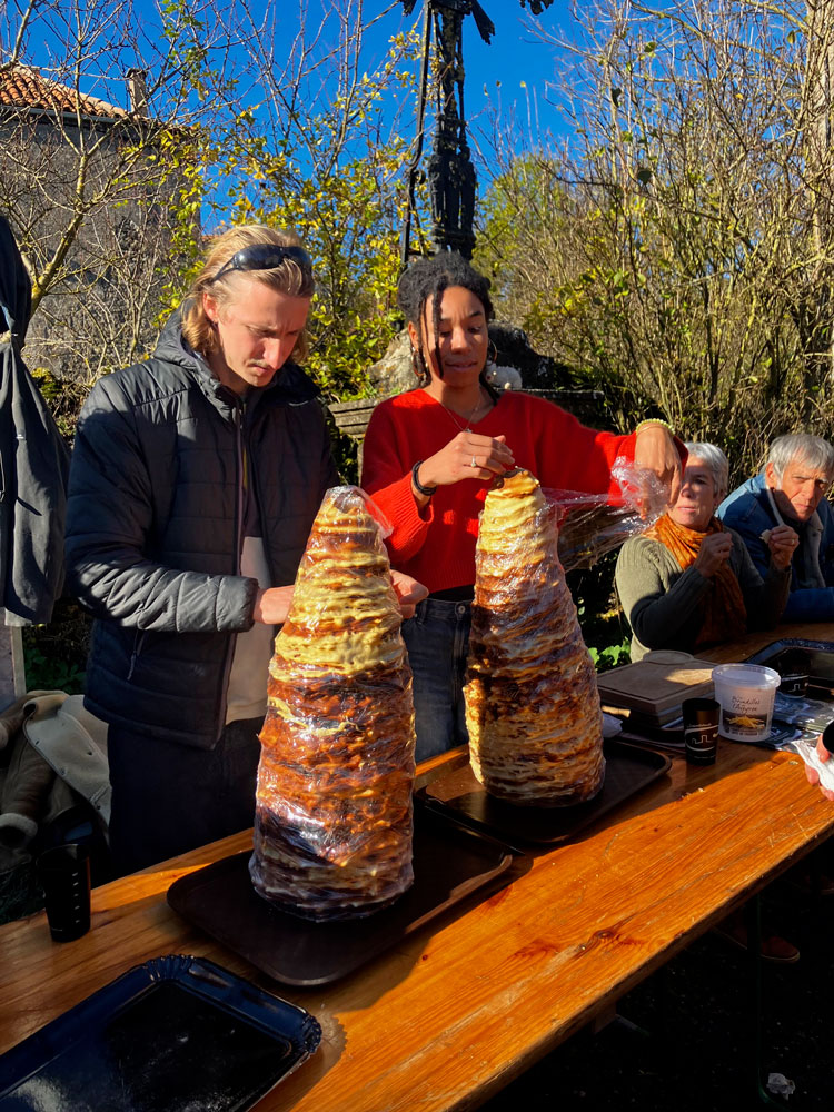 à tous les bénévoles qui ont assuré la logistique avant et après ; pour préparer et chauffer le four (dès le lundi),